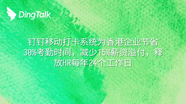 钉钉移动打卡系统为香港企业节省30%考勤时间,减少15%薪资溢付,释放HR每年24个工作日