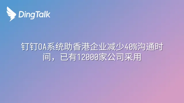 钉钉OA系统助香港企业减少40%沟通时间,已有12000家公司采用