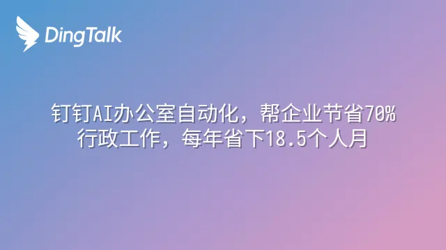 钉钉AI办公室自动化,帮企业节省70%行政工作,每年省下18.5个人月