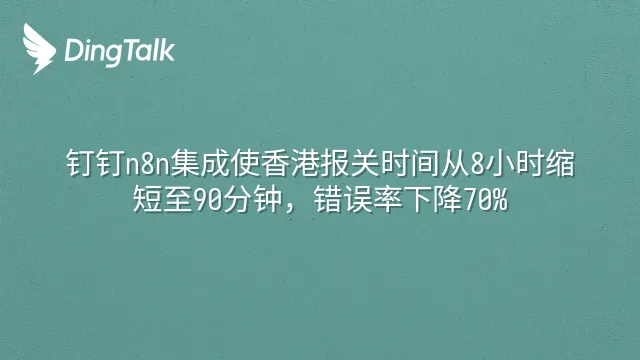 钉钉n8n集成使香港报关时间从8小时缩短至90分钟,错误率下降70%