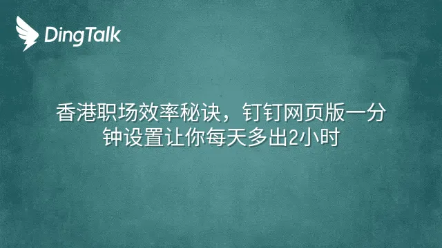 香港职场效率秘诀,钉钉网页版一分钟设置让你每天多出2小时