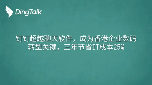 钉钉超越聊天软件,成为香港企业数码转型关键,三年节省IT成本25%