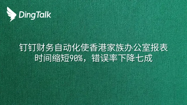 钉钉财务自动化使香港家族办公室报表时间缩短90%,错误率下降七成