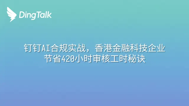 钉钉AI合规实战,香港金融科技企业节省420小时审核工时秘诀