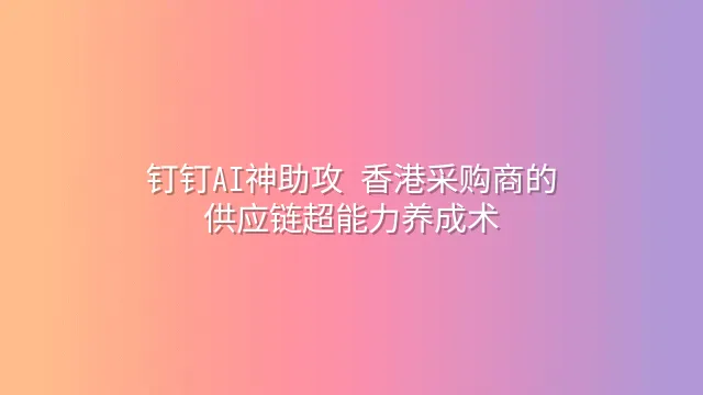 钉钉AI神助攻 香港采购商的供应链超能力养成术