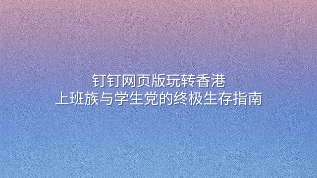 钉钉网页版玩转香港:上班族与学生党的终极生存指南