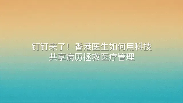 钉钉来了!香港医生如何用科技共享病历拯救医疗管理