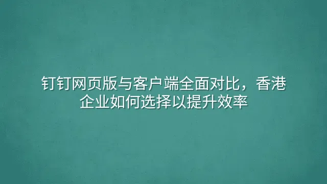 在香港快节奏的商业环境中,钉钉网页版与客户端的深度对比分析成为企业提升效率的关键课题。本文从性能、安全到协作体验,全面剖析哪种模式更适合你的团队。