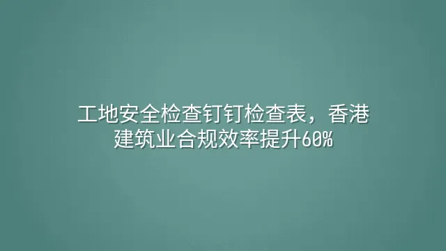 工地安全检查钉钉检查表,香港建筑业合规效率提升60%