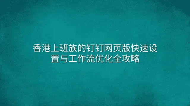 香港上班族的钉钉网页版快速设置与工作流优化全攻略