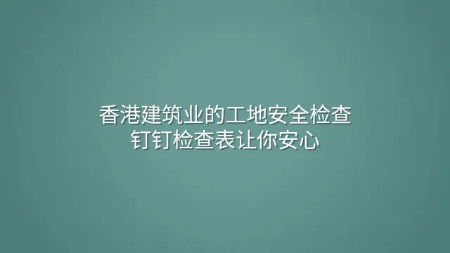 香港建筑业的工地安全检查:钉钉检查表让你安心