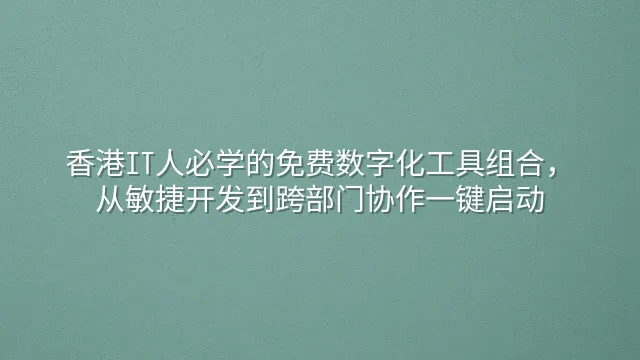 香港IT人必学的免费数字化工具组合,从敏捷开发到跨部门协作一键启动