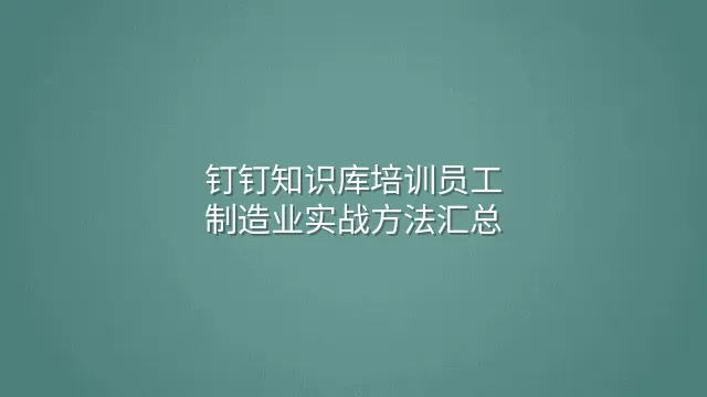钉钉知识库培训员工:制造业实战方法汇总