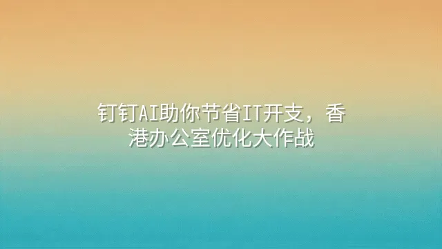 钉钉AI助你节省IT开支,香港办公室优化大作战