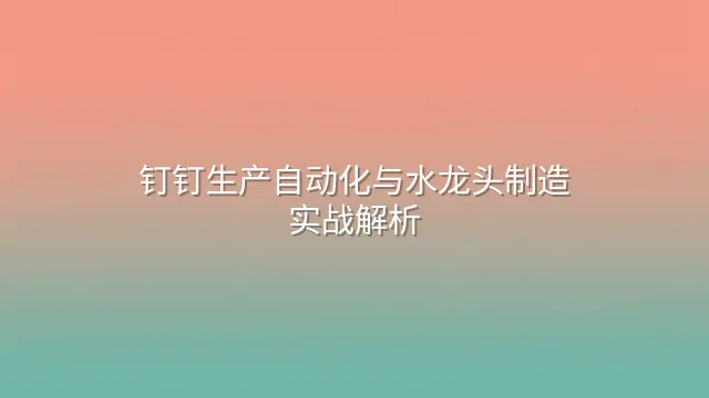 你是否曾好奇过,一根小小的钉子和一个复杂的水龙头是如何制造出来的?这篇文章将带你深入了解钉子生产自动化和水龙头制造的过程,并通过实战案例进行解析。准备好迎接这场生产技术的盛宴吧!