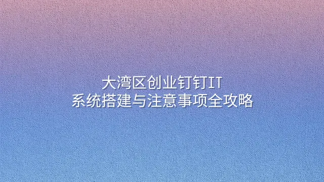 大湾区创业钉钉IT:系统搭建与注意事项全攻略